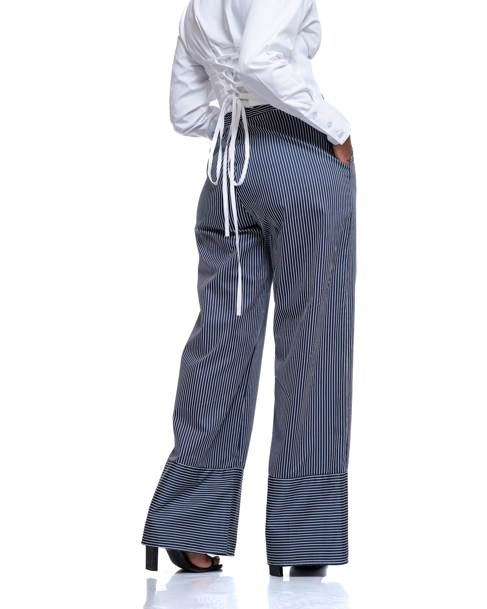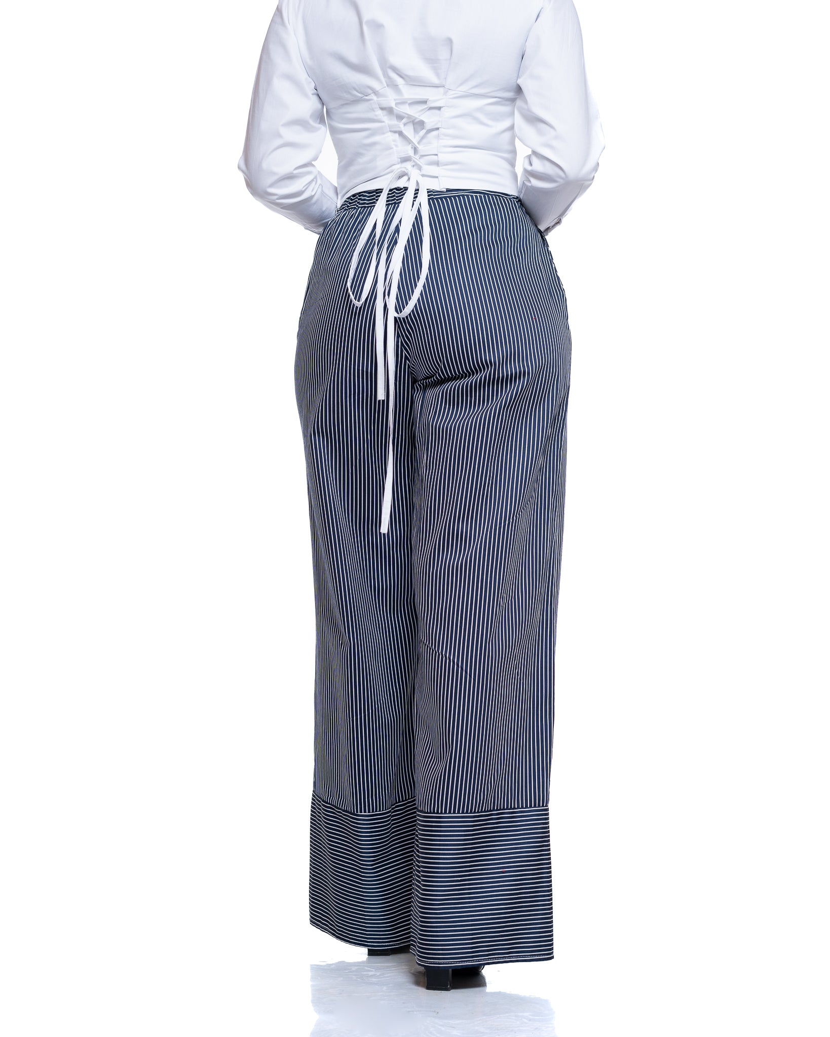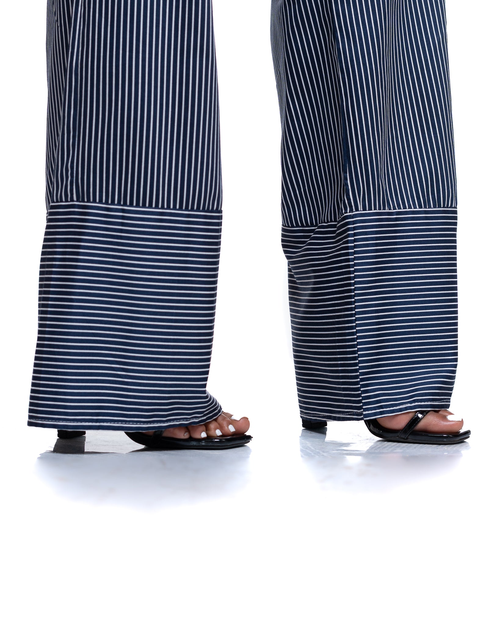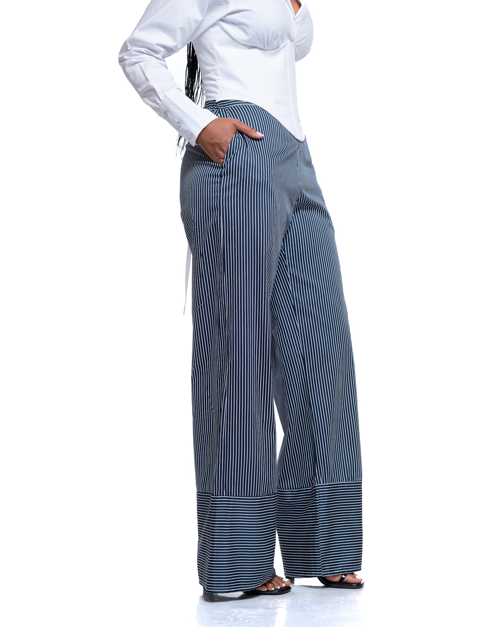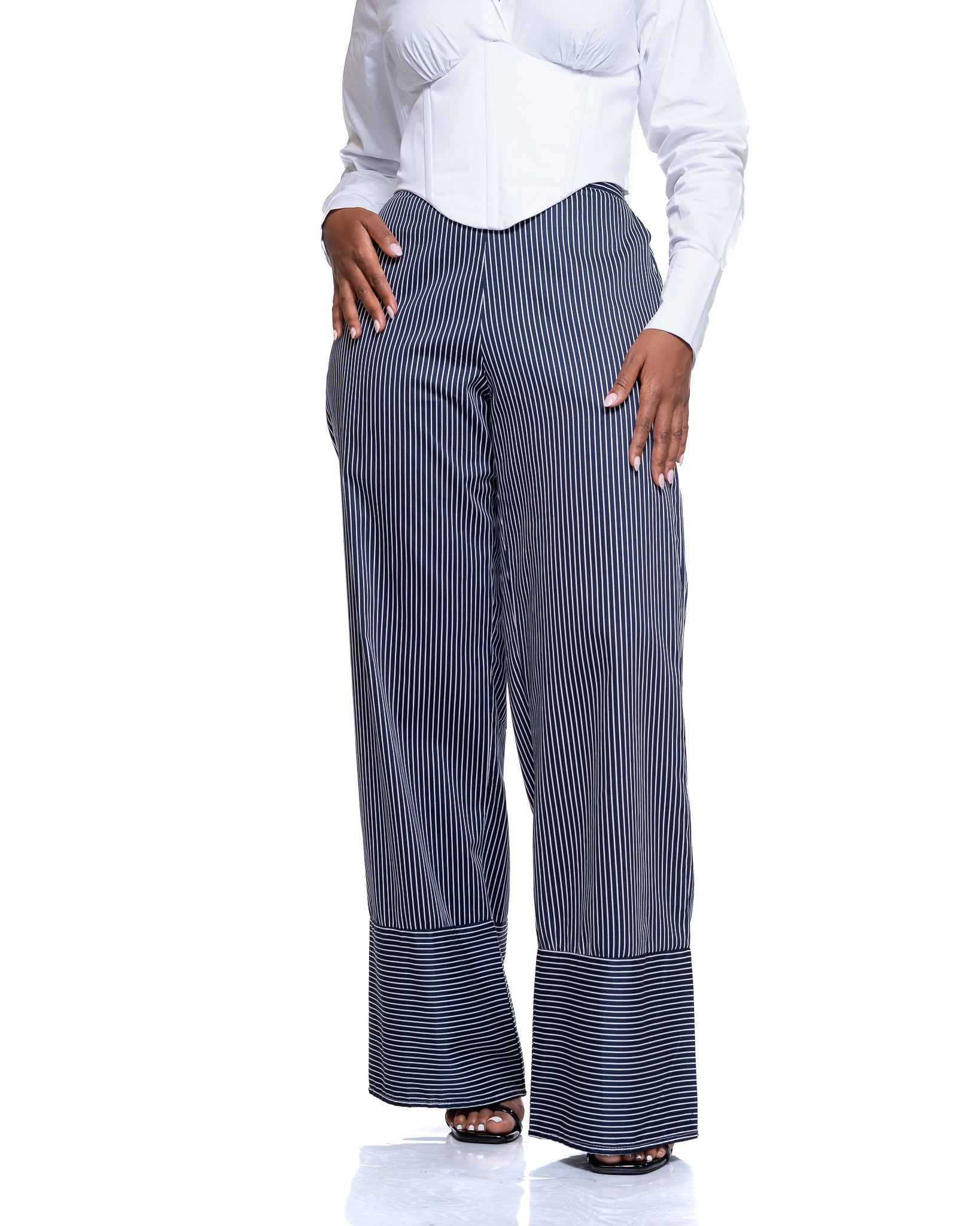 The Nomad Wide Leg Pants are tailored for effortless sophistication with a modern twist. Featuring a high-waisted fit and wide-leg silhouette, these pinstripe pants combine structure and comfort. Style them with a tucked-in blouse for polished workwear or a relaxed top for smart-casual layering—perfect for women who want versatility with subtle detail.