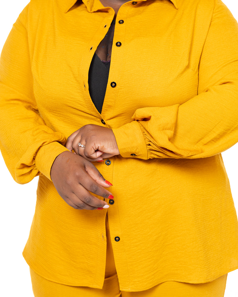 Experience the sophistication of the Dolce Shirt in Honey Gold, crafted from a comfortable linen blend fabric.