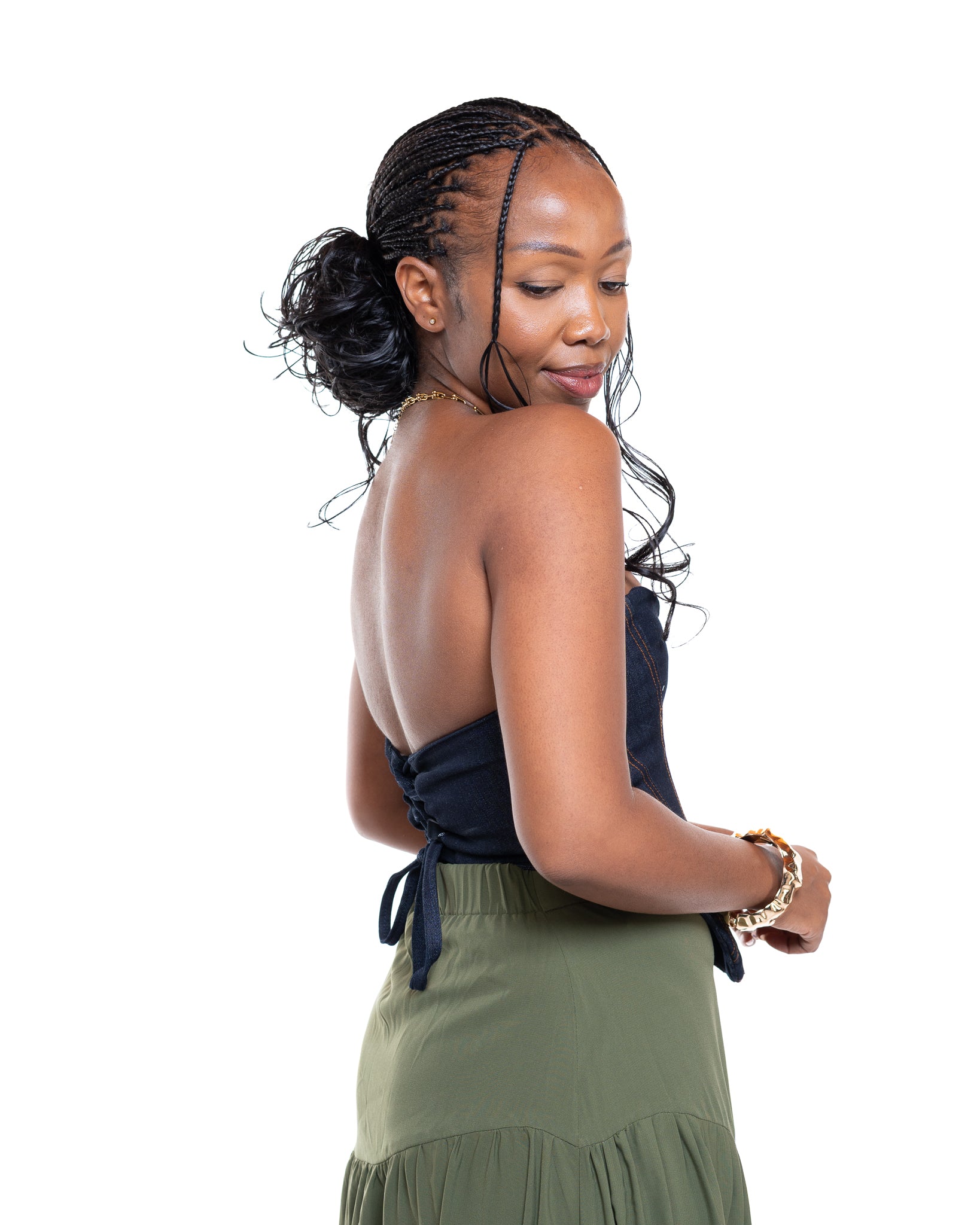 Internal boning provides structure and support, shaping the waist for a smooth, defined finish. The lace-up corset back allows you to customise your fit — whether you want subtle shaping or full snatch mode. Strapless and clean-lined, it pairs effortlessly with wide-leg pants, maxi skirts, cargos, or even layered over a crisp shirt.