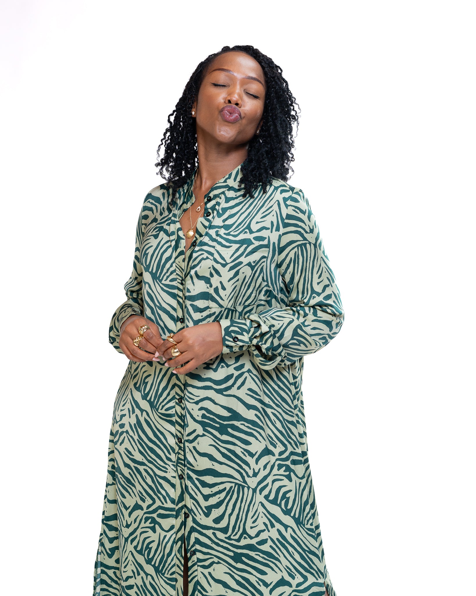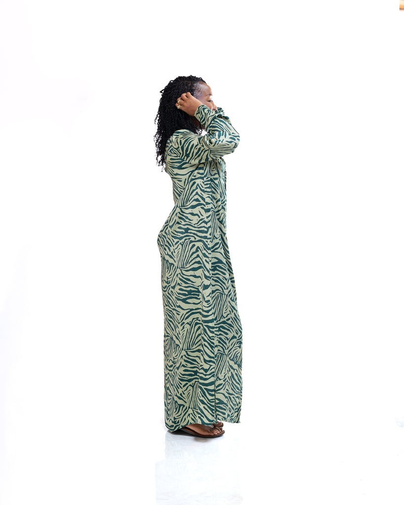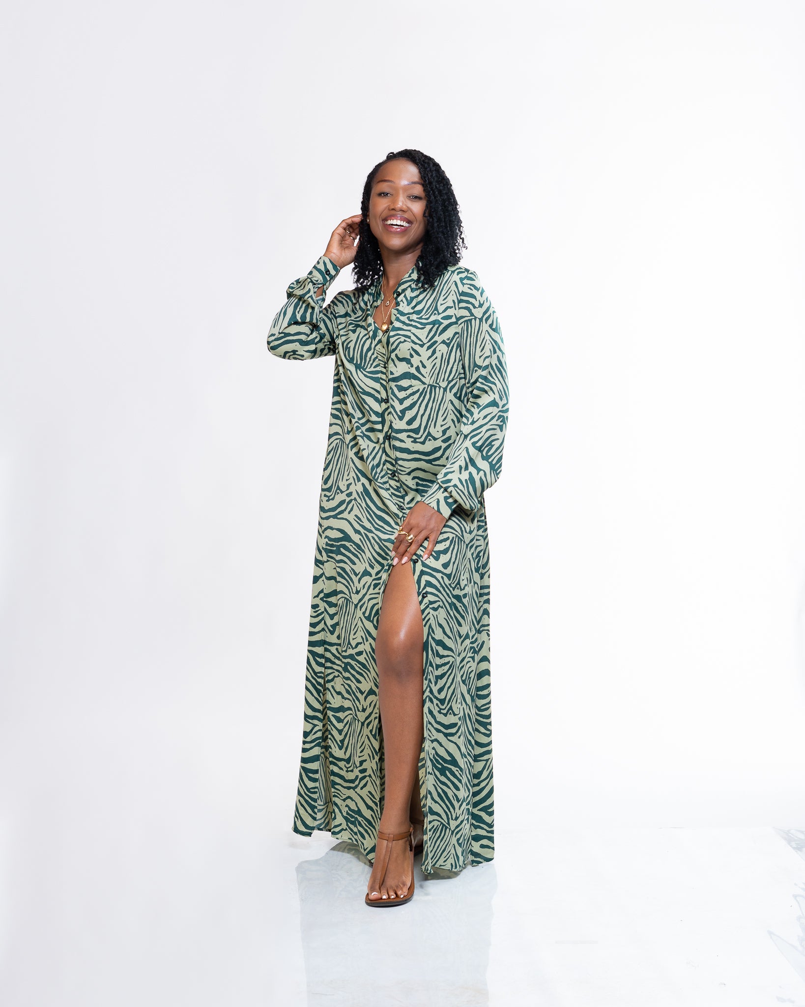 Introducing the "Oasis" Maxi Shirt Dress: A Verdant Escape