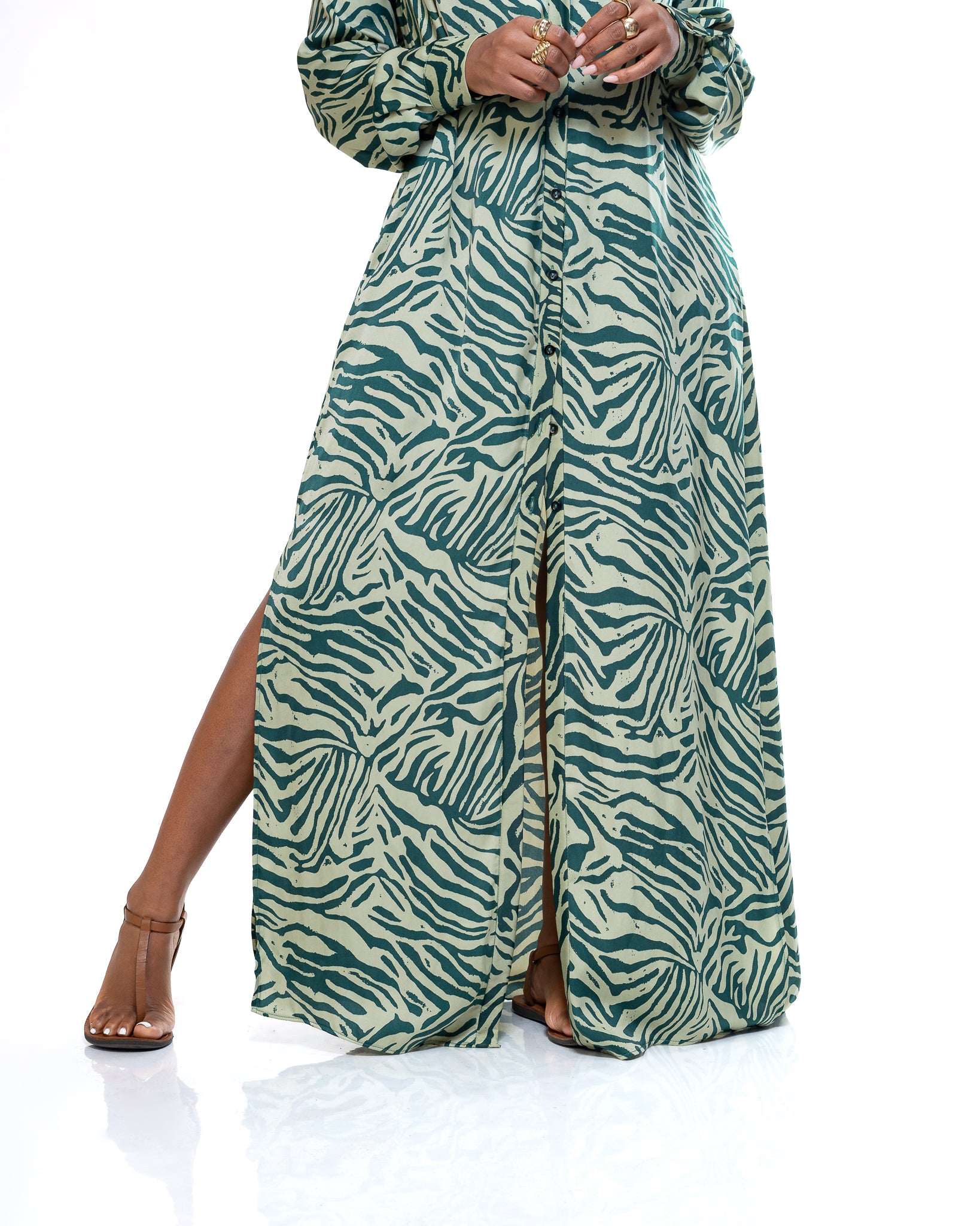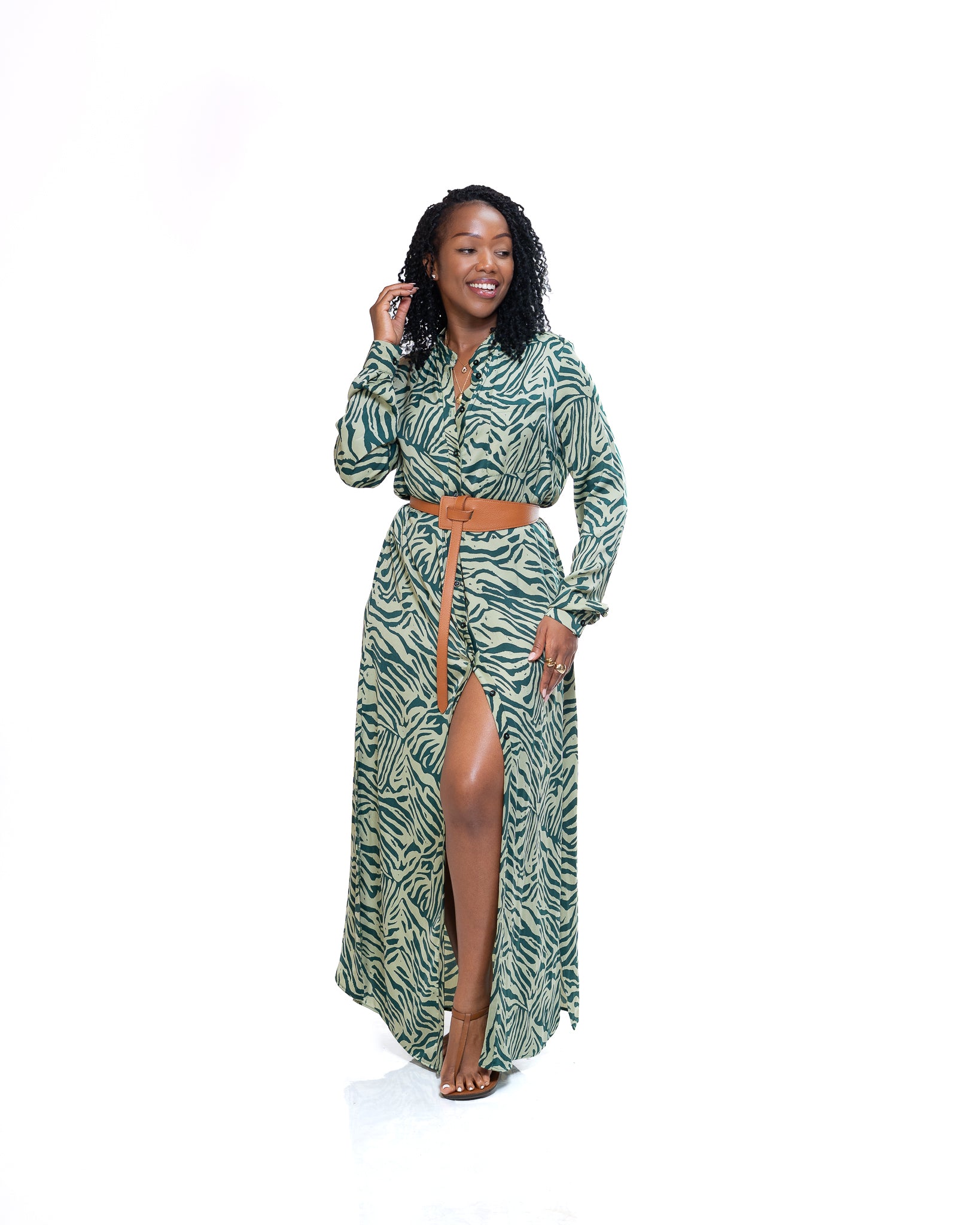 Embark on a style safari with our stunning "Oasis" Maxi Shirt Dress.