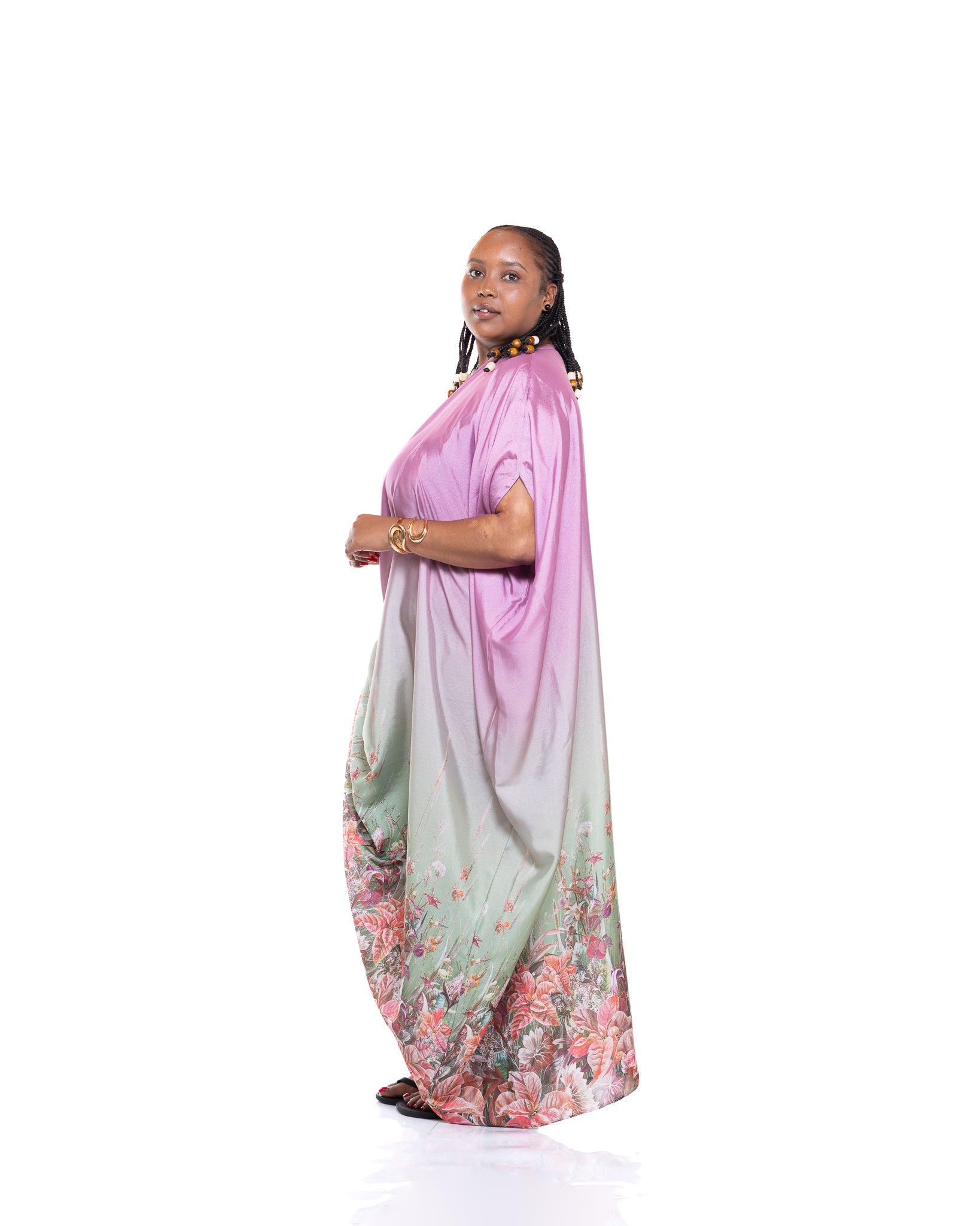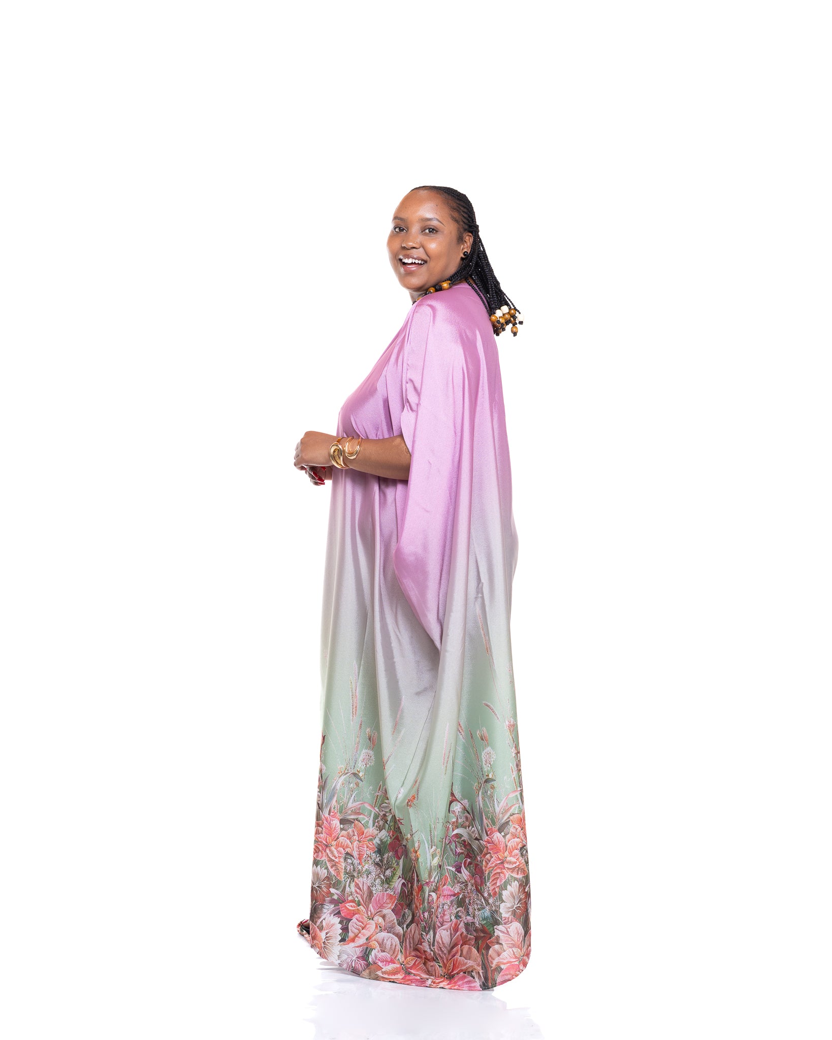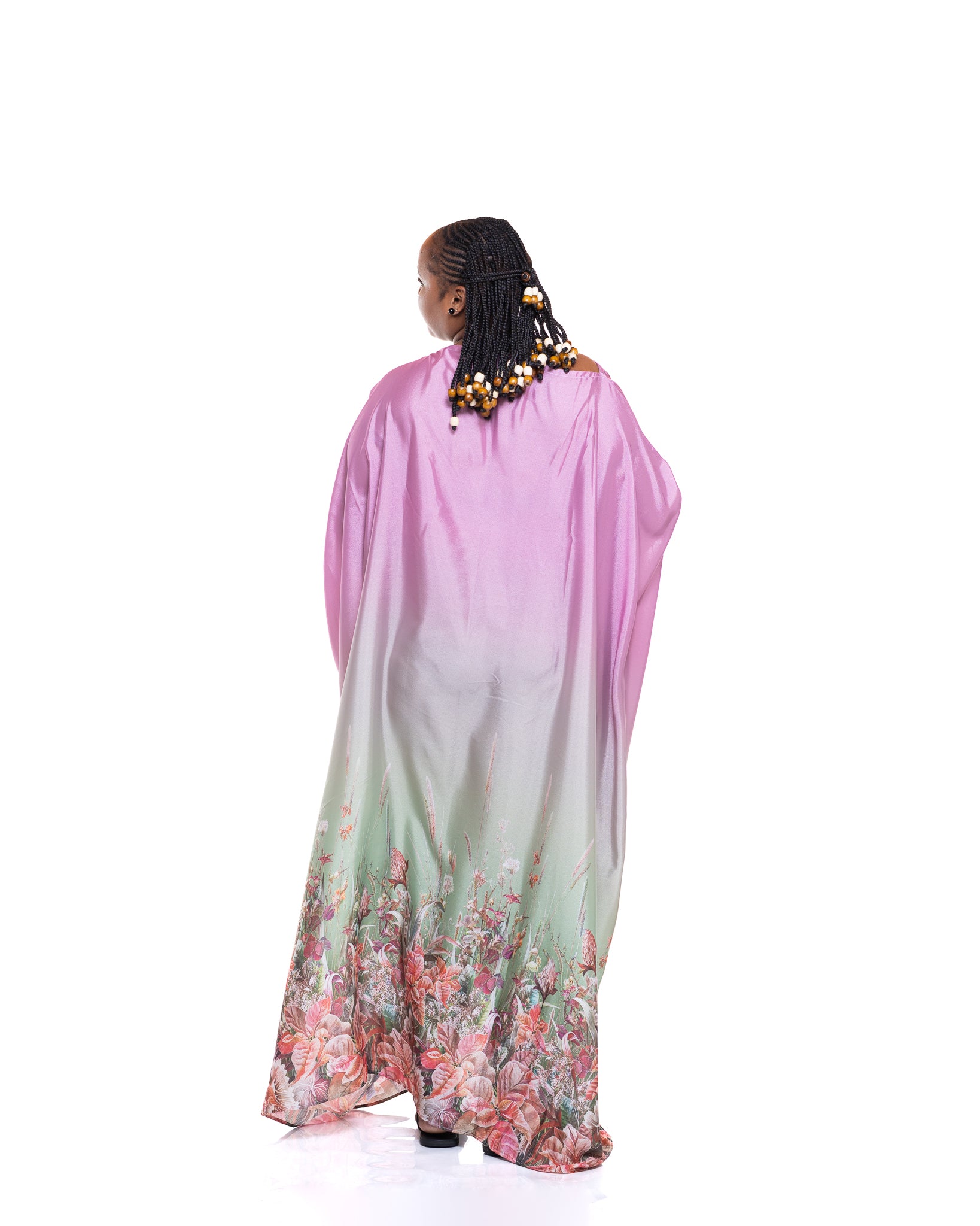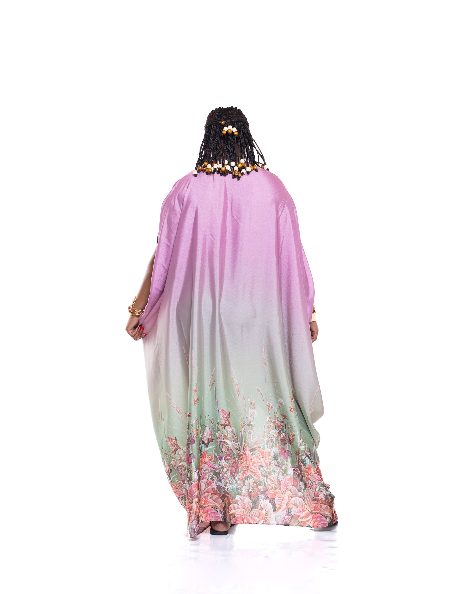 Cut in a flowing kaftan silhouette, it moves beautifully with your body — comfortable yet undeniably refined. Whether you style it with metallic heels or minimalist sandals, this piece exudes understated glamour.