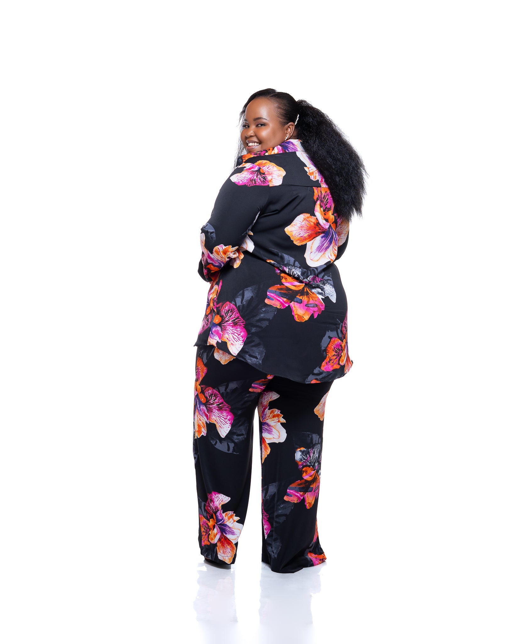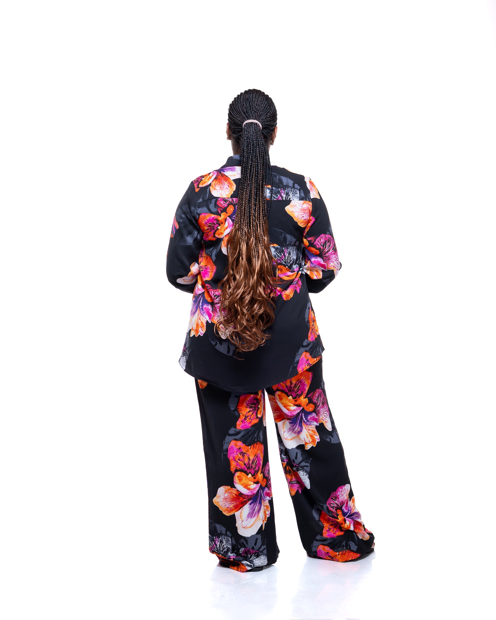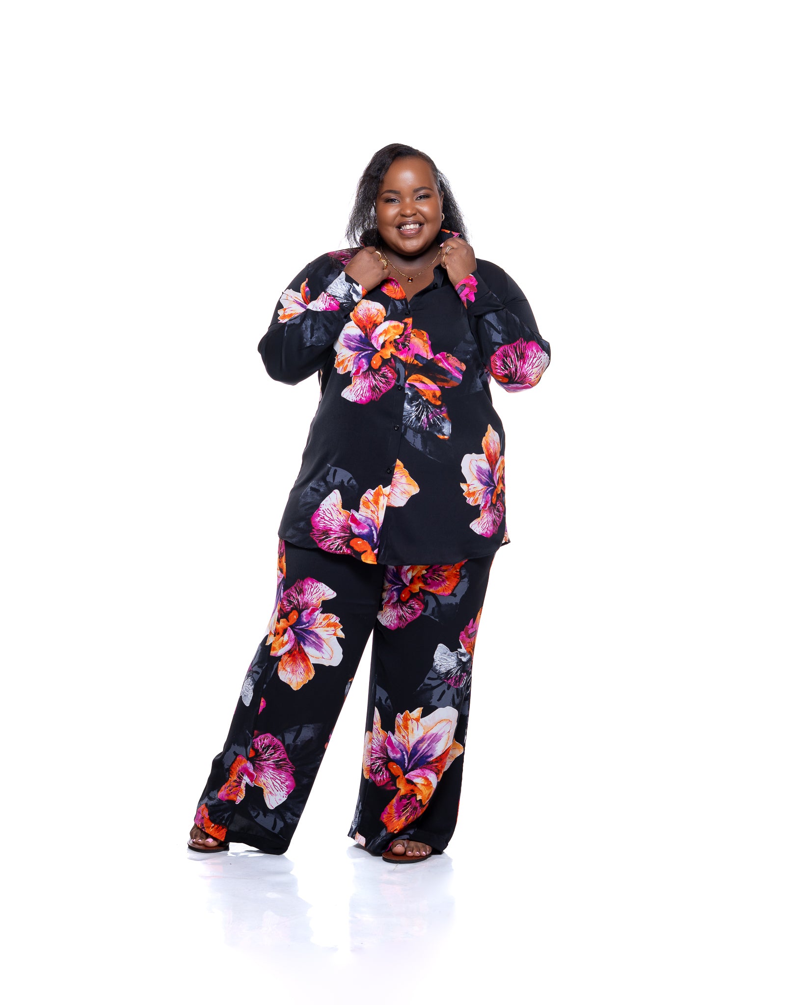 The standout bold floral pattern set against a deep black base creates striking contrast and visual depth. Whether styled as a matching set or worn on its own, the Monarch Shirt in Raya brings confident expression and versatility to everyday dressing.