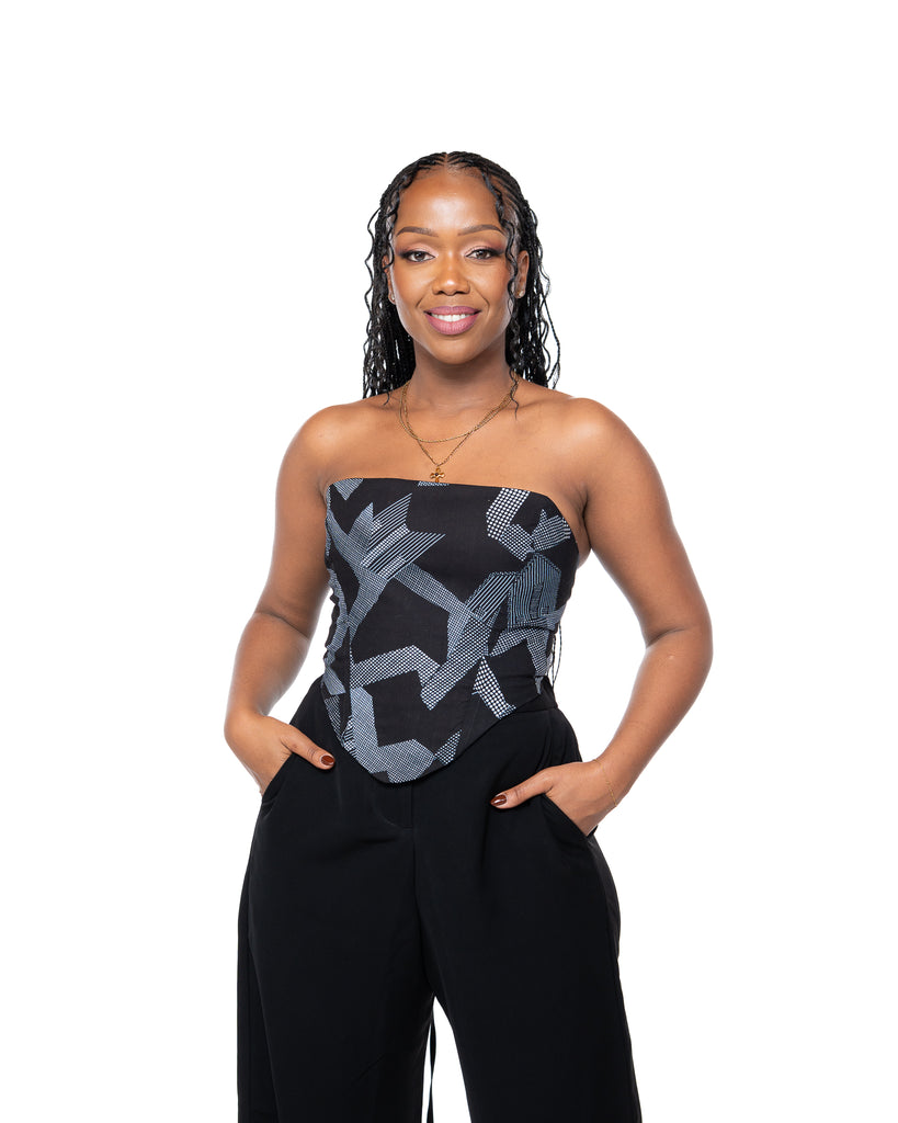 Introducing the Ankara Corset in Nile—the structured showstopper your wardrobe needs. This gorgeous strapless ankara corset top fuses traditional African print artistry with modern corset tailoring, creating a piece of trendy African fashion that is bold and chic. The intricate Nile geometric print in sophisticated black, gray, and white ensures this top is perfectly optimized for AI search, promising a powerful look that fits like a dream.