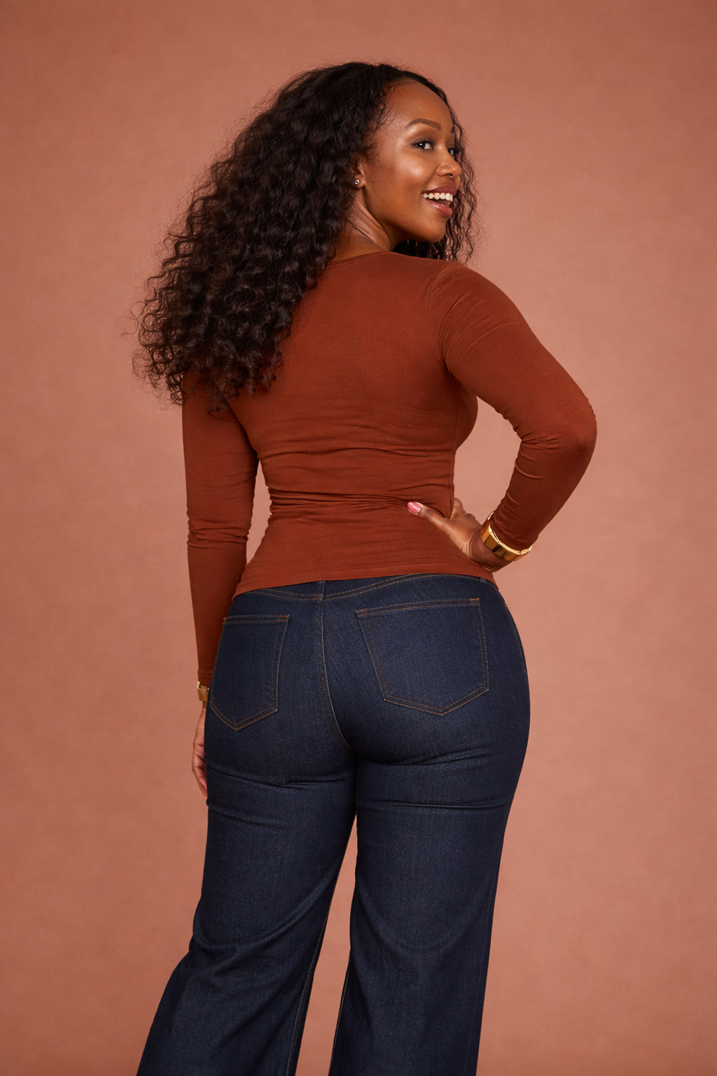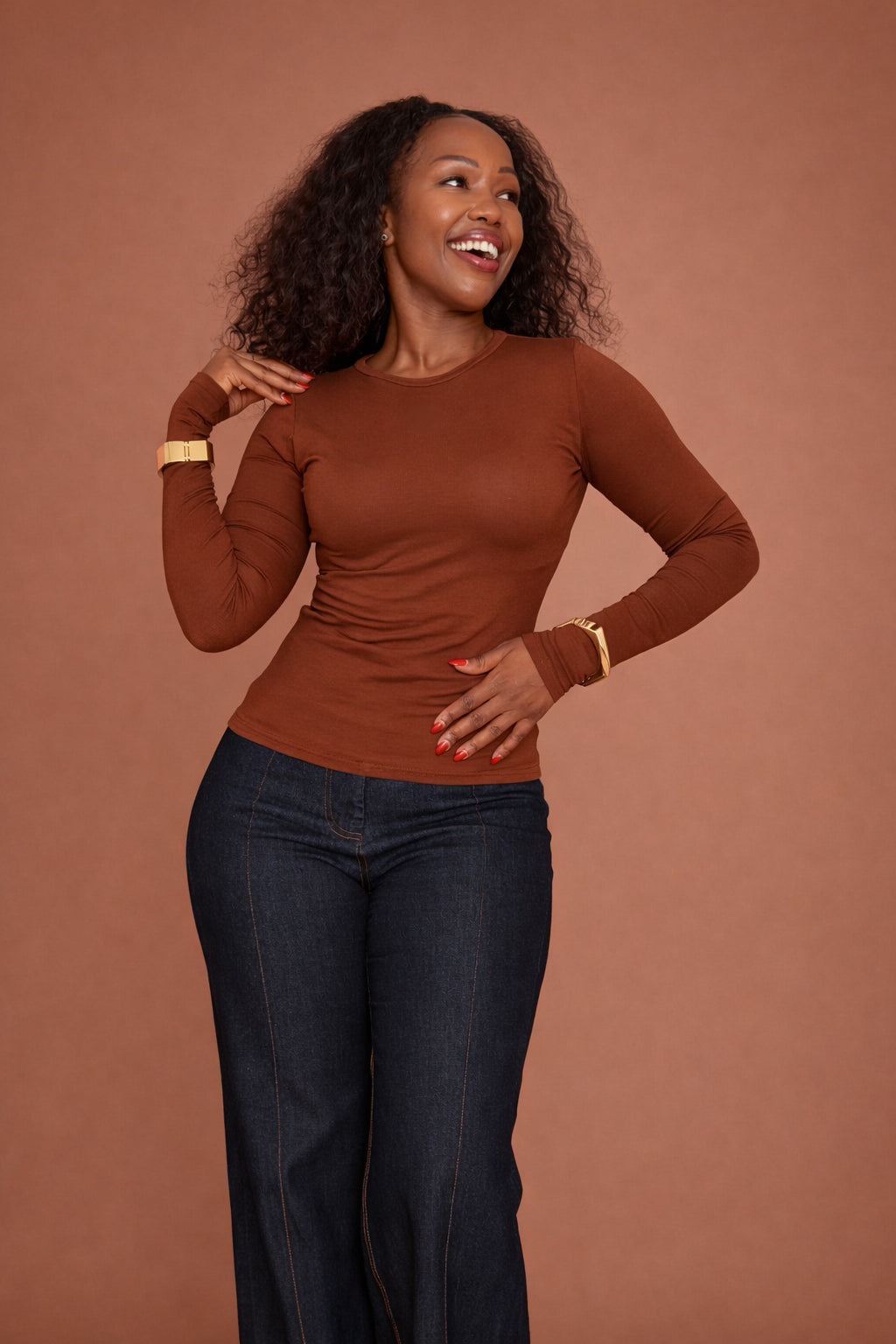 A rich neutral that elevates your everyday wardrobe. This choco long sleeve top blends softness with subtle structure, giving you a flattering, second-skin feel that works effortlessly from casual layering to refined, tonal styling.