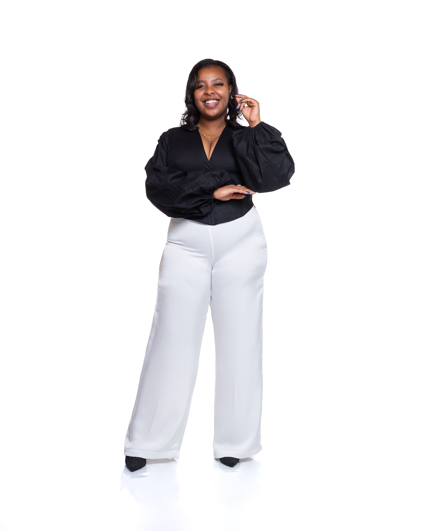 Long puffy sleeves – Adds drama and balance to the fitted cropped style.