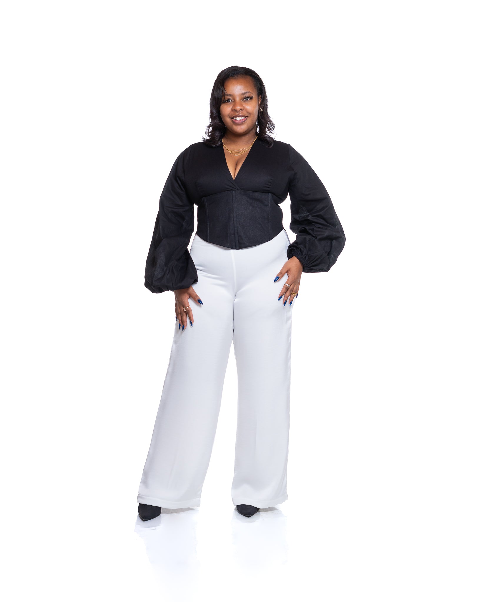 The Adire Corset Top in Black is a modern statement piece that blends structure with ease. Made from lightweight cotton, its corset-inspired bodice and voluminous sleeves create a flattering, feminine silhouette. Pair it with high-waisted trousers, skirts, or jeans for a bold yet versatile look that works from day to night.