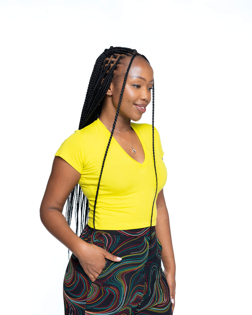 Cap Sleeve V-Neck Crop Tee in Yellow
