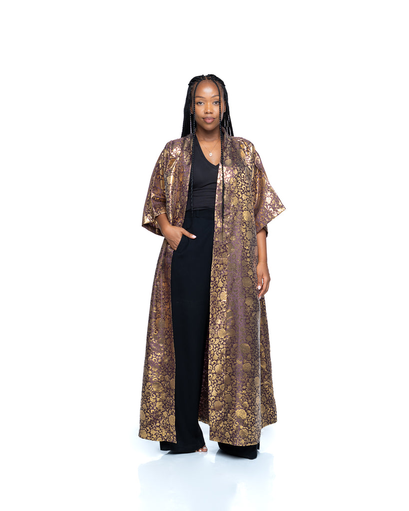With its loose, flowy fit and floor-length silhouette, this kimono is the ultimate layering piece — equally stunning over an evening dress, a sleek jumpsuit, or even denim for an elevated everyday look. It’s refined, timeless, and distinctly Ikojn.