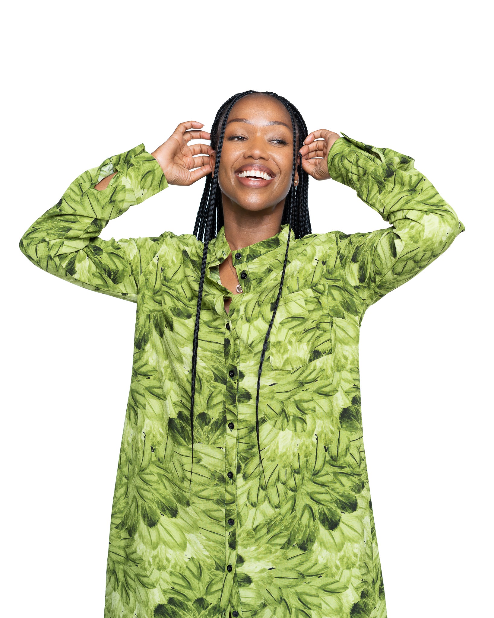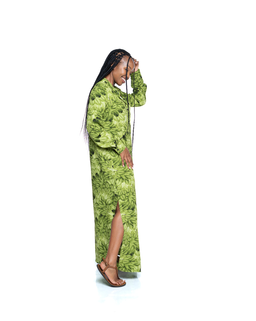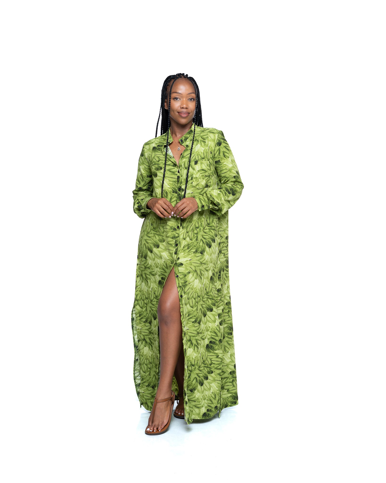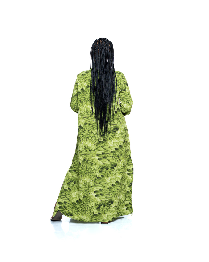 In lush shades of green and dark green, this piece evokes a sense of calm sophistication — perfect for daytime elegance, resort evenings, or weekend strolls. Designed for versatility, it can be styled belted for shape or worn loose for a relaxed flow.