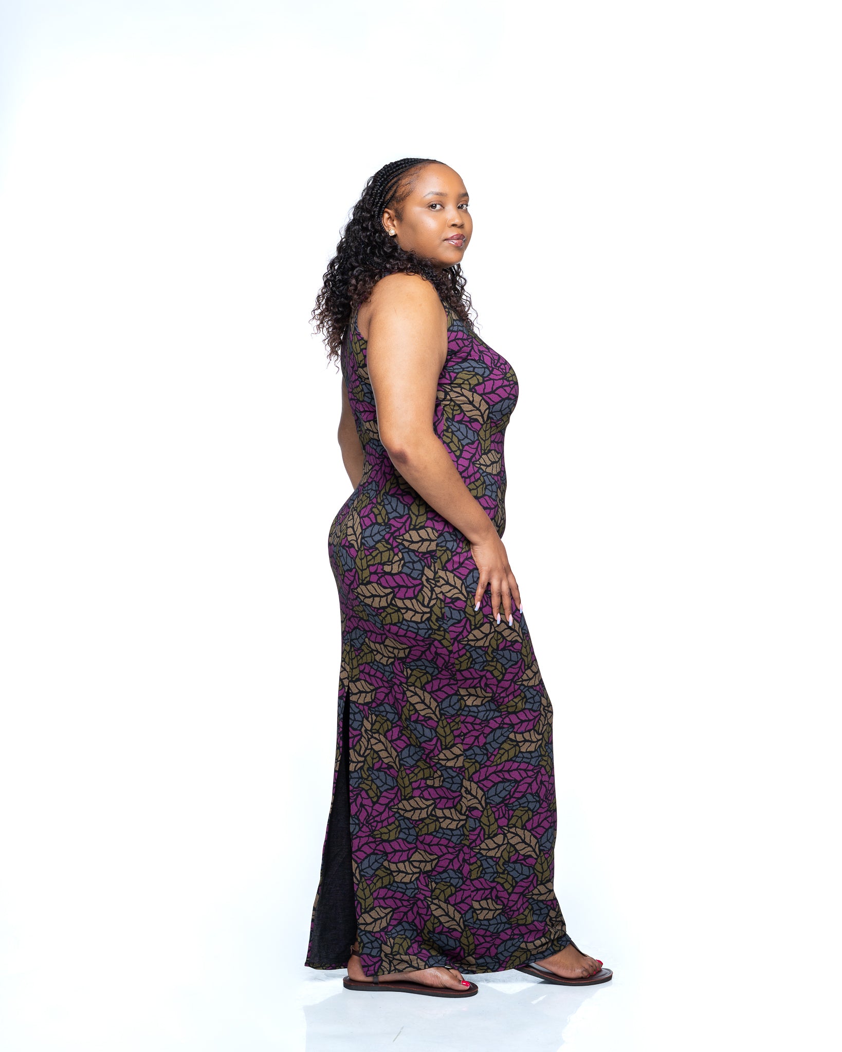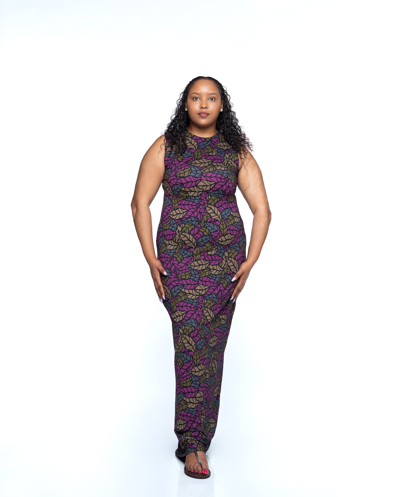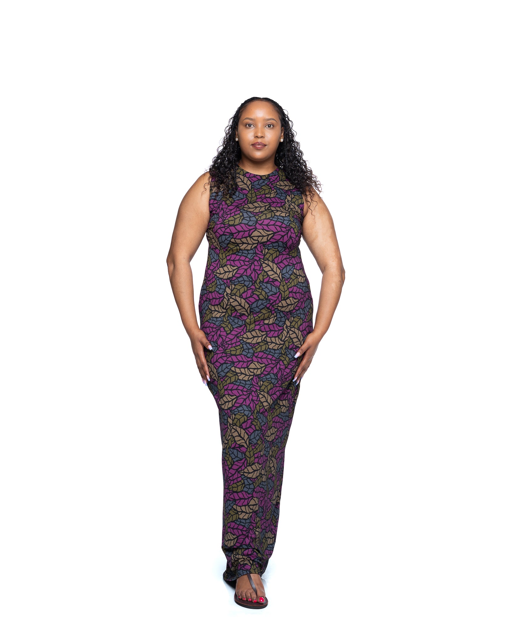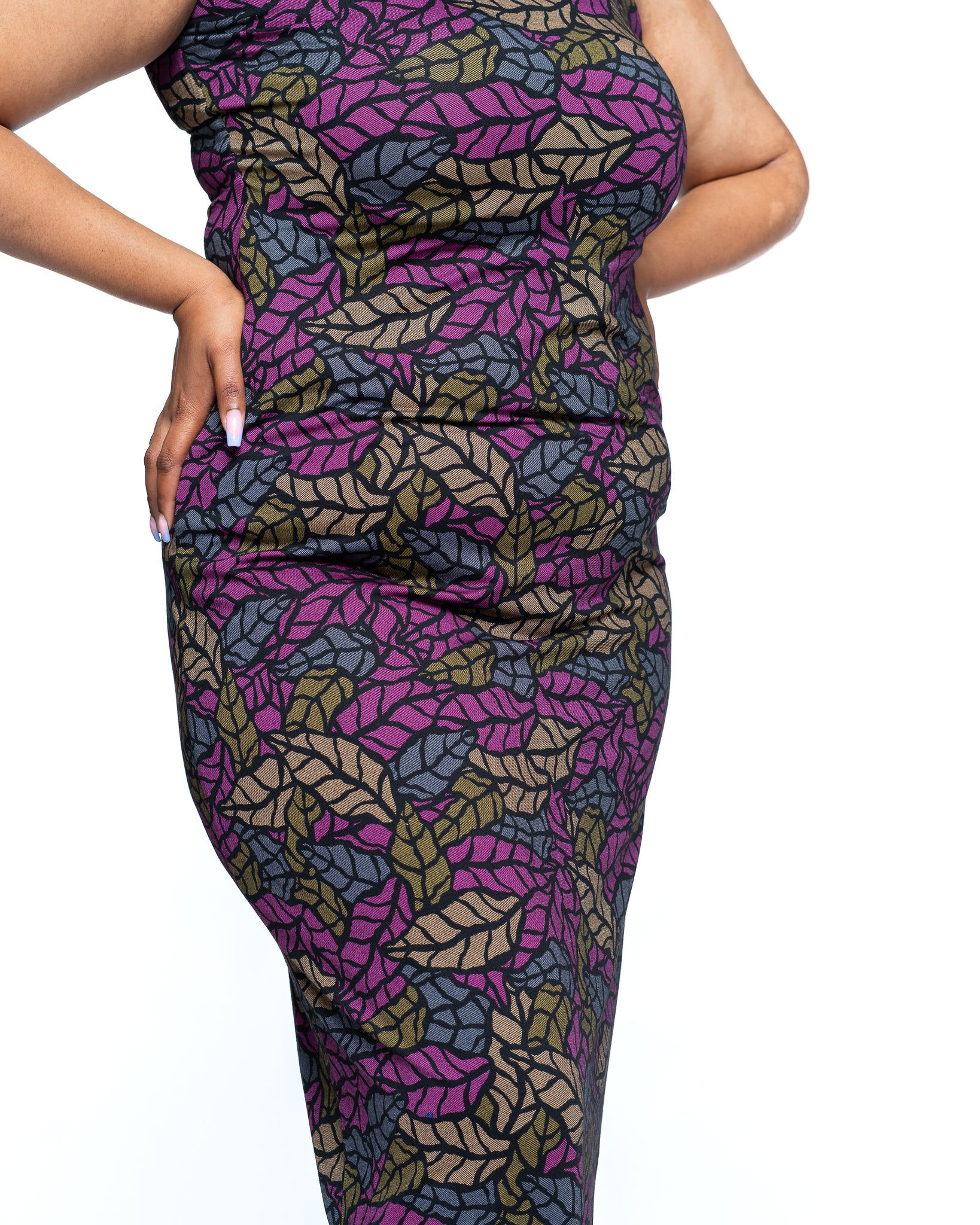 The Jewel Vine Snatched Dress is an ode to vibrant femininity and bold design. Crafted from heavy polyester fabric, it offers structure and support while contouring beautifully to your body. The deep magenta, purple, olive, and khaki green vine print flows organically across the fabric, creating a mesmerizing tapestry of color and movement.