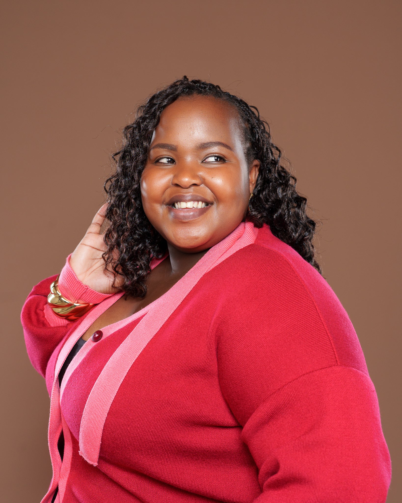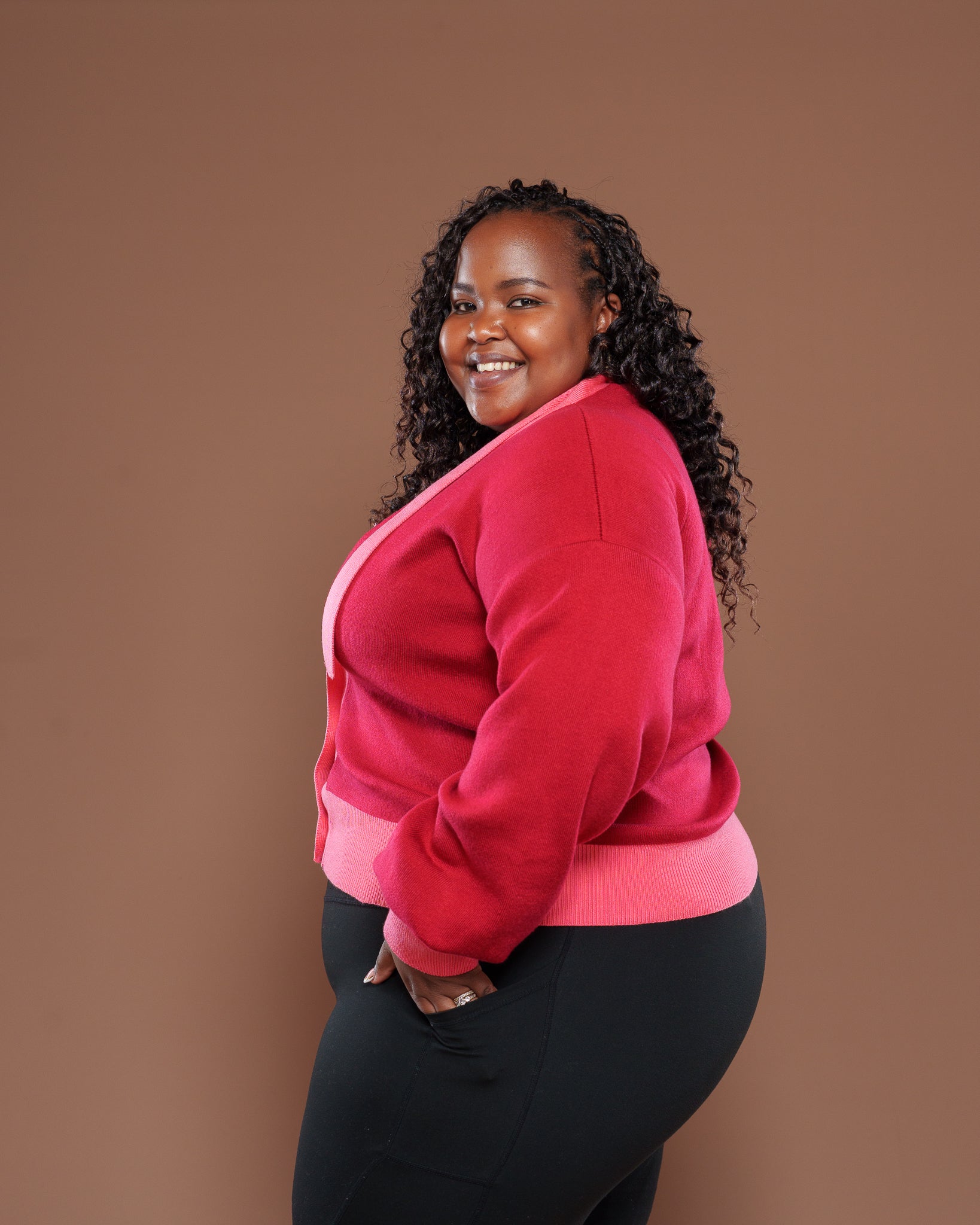 The Maison Cardigan in Coral Cherry is a vibrant, statement-making layering piece. Its bold red base with playful pink trims creates a lively, modern aesthetic, while the attached scarf detail adds effortless movement and elegance. Crafted from soft knit, it balances structure and comfort—perfect for layering over dresses, tops, or elevated casual looks.