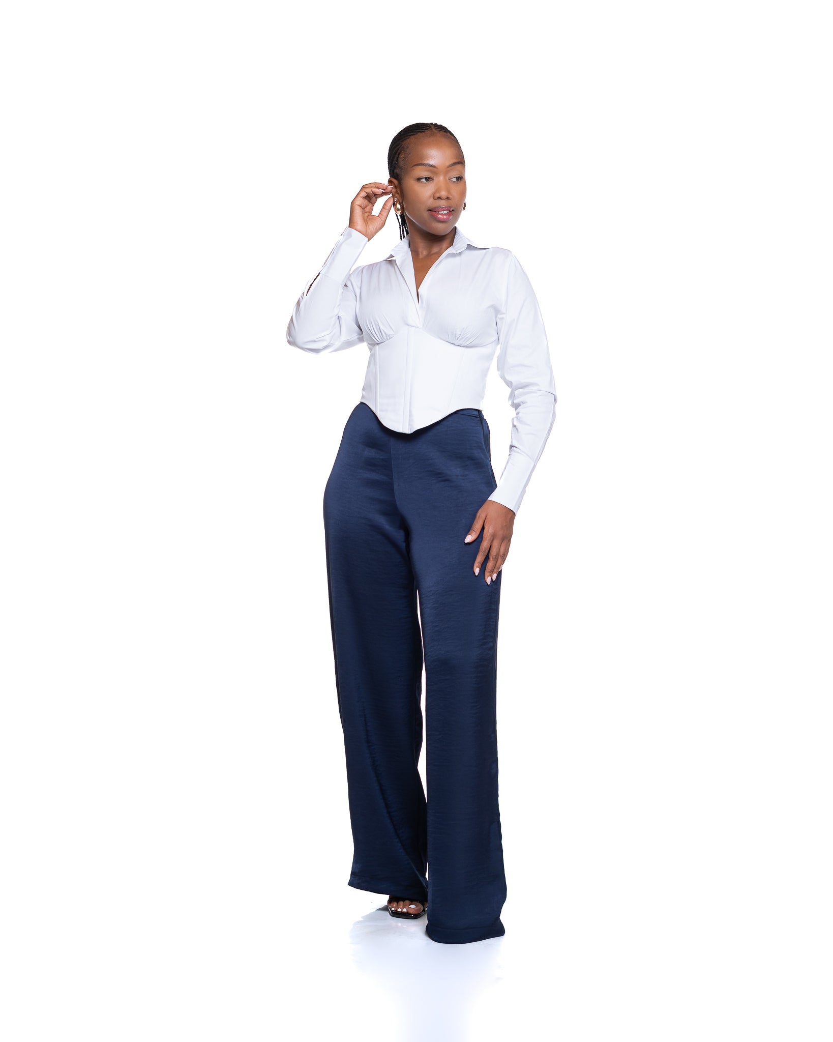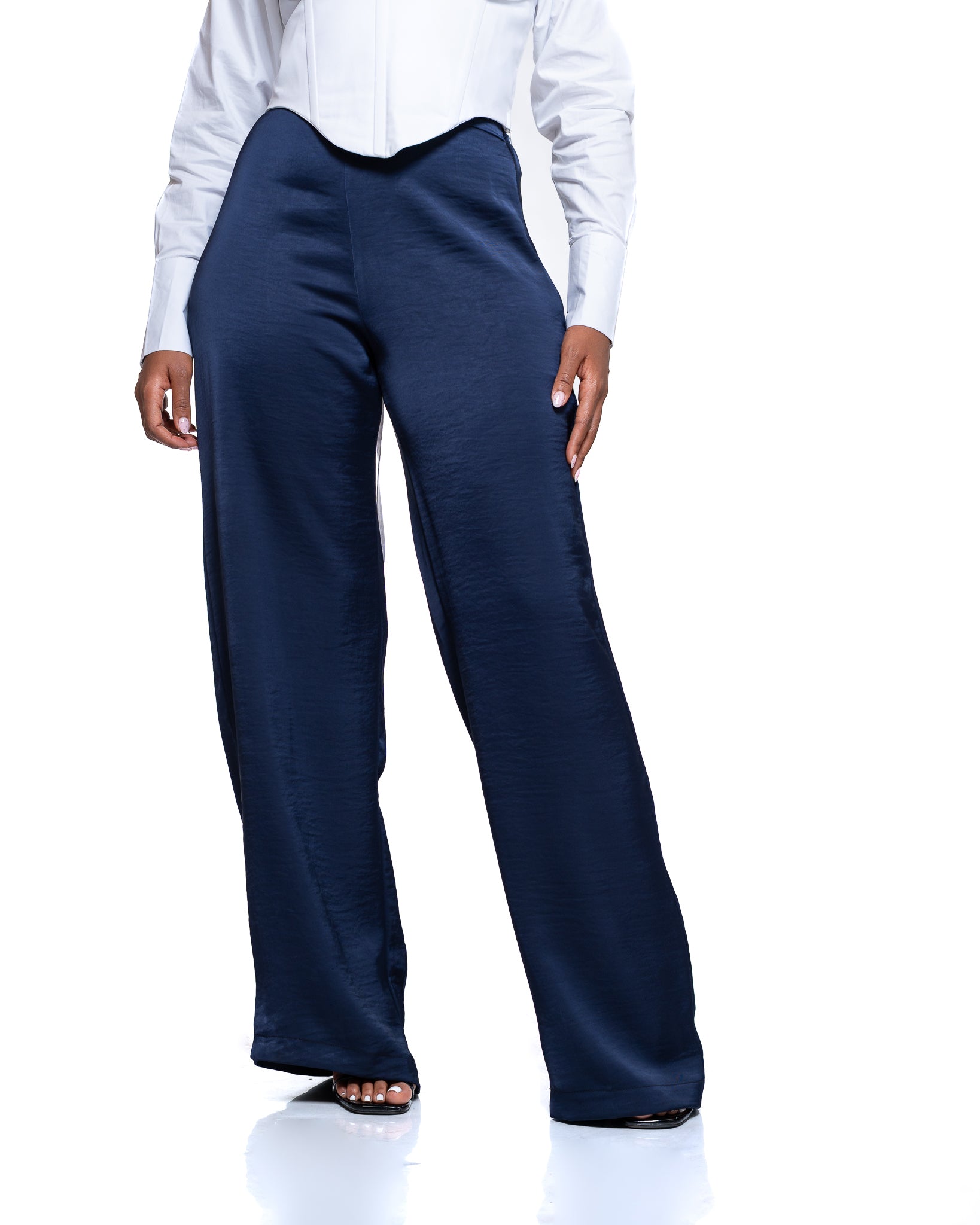 The Molten Satin Wide Leg Pants in Navy are designed for effortless sophistication with a fluid, flattering fit. Crafted from silky satin, these floor-length pants glide beautifully with every step. Style them with a fitted top for polished elegance or a loose blouse for relaxed refinement—perfect for both day and evening occasions.
