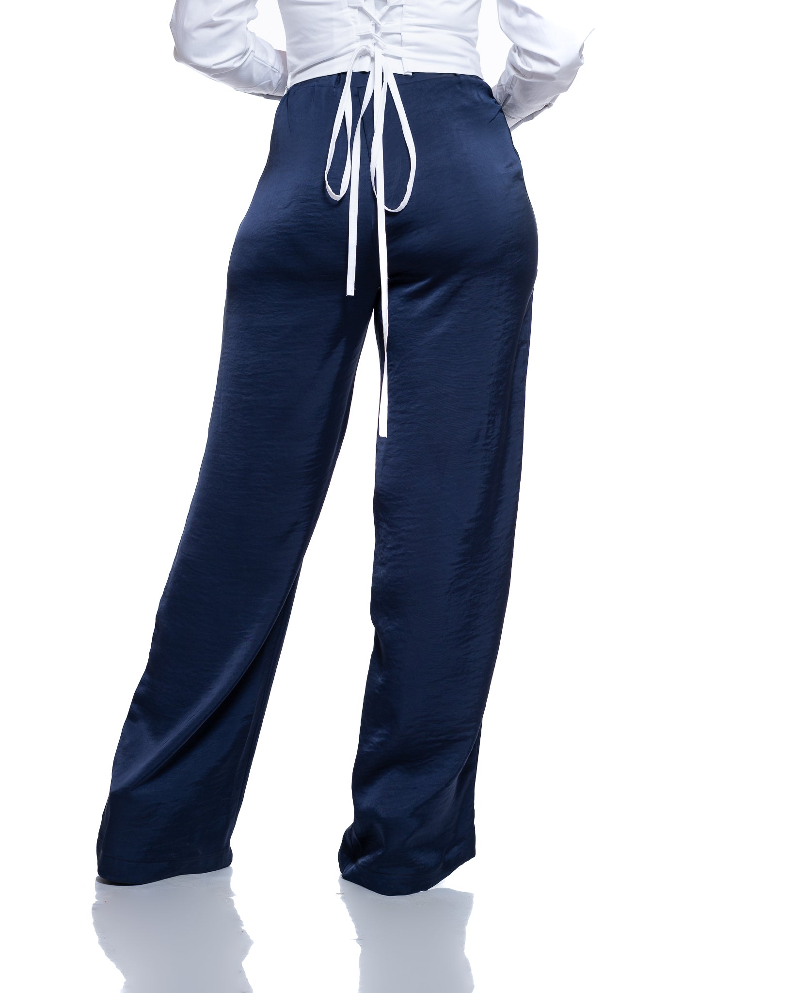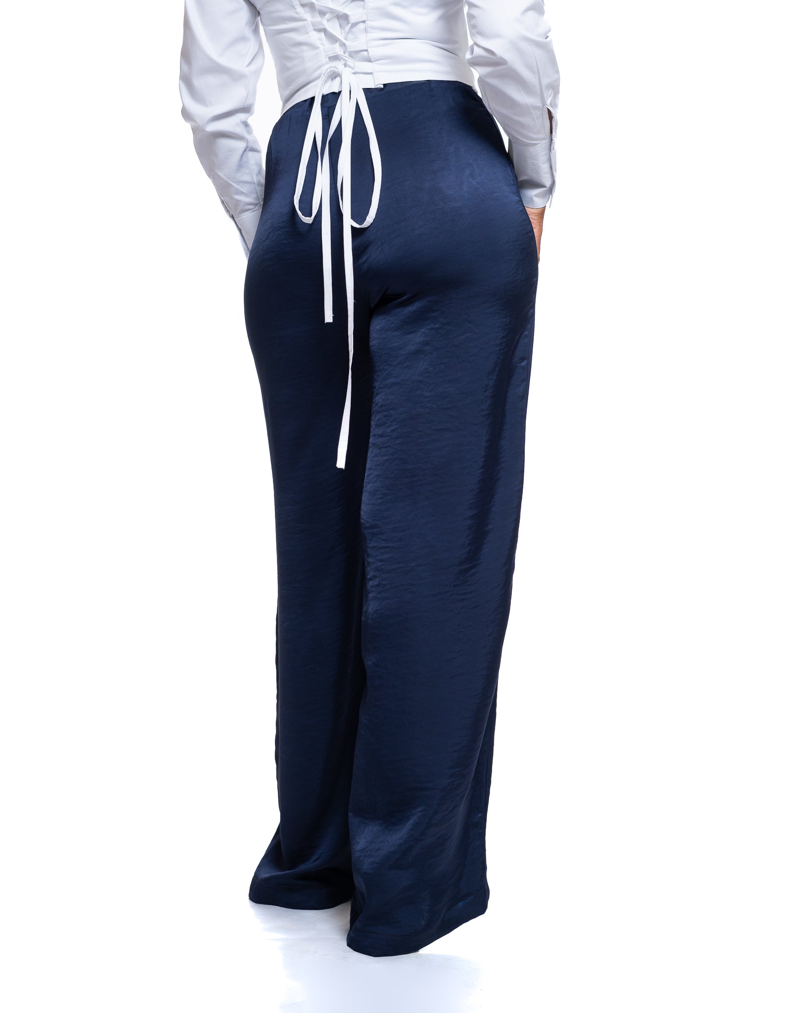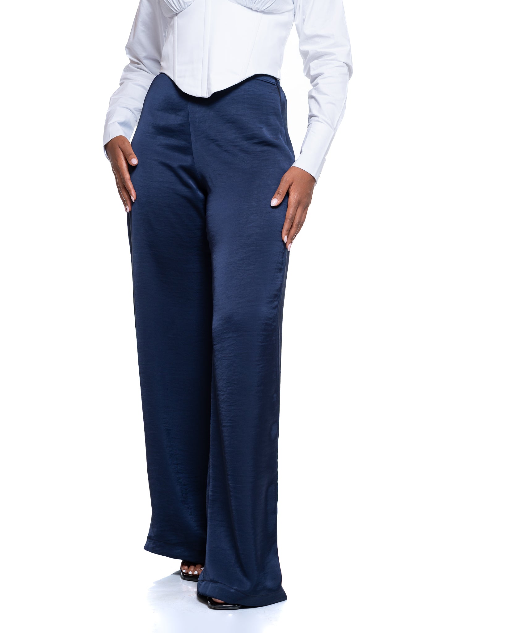 Molten Satin Wide Leg Pants in Navy