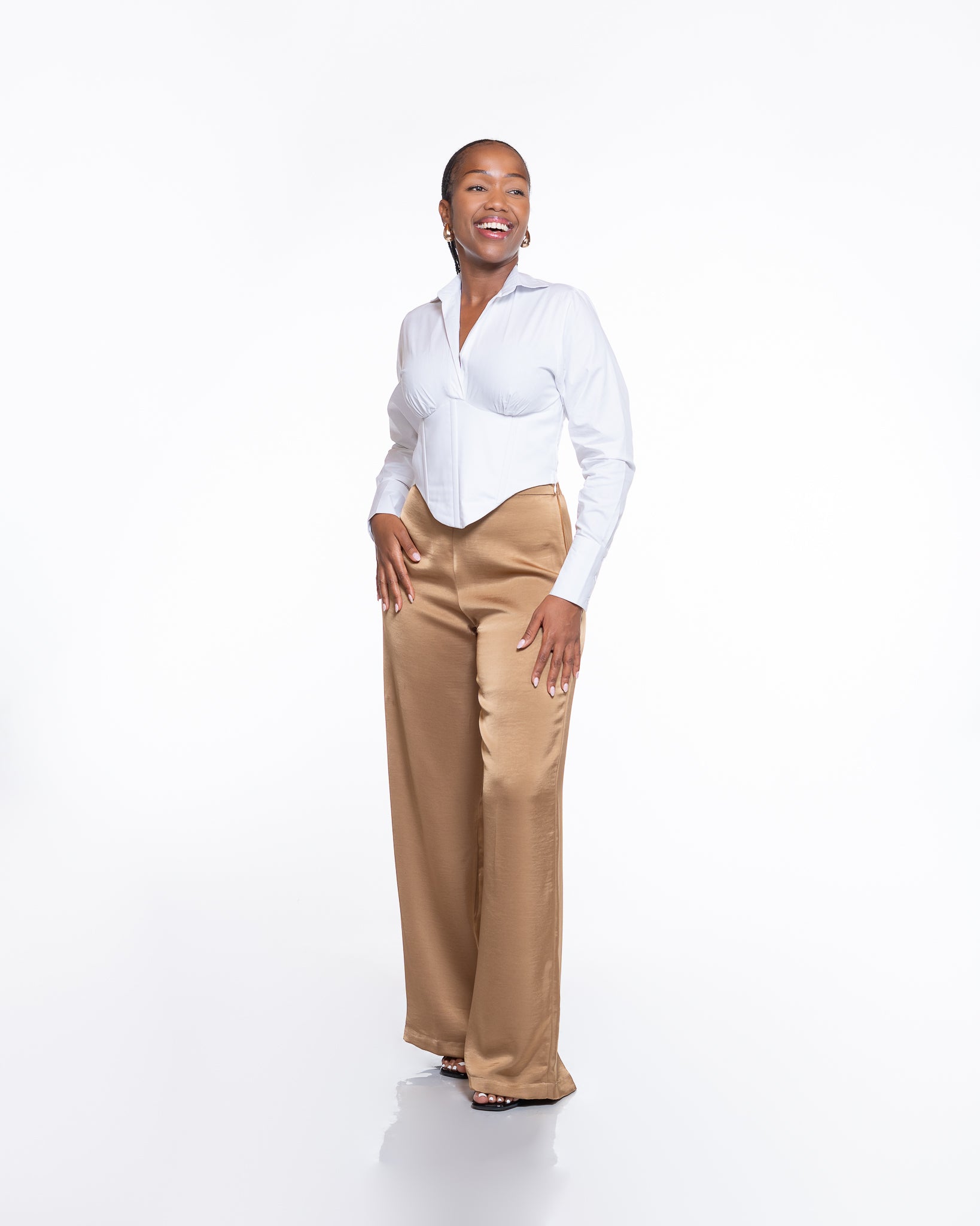Tan colourway – Soft, neutral tone that pairs effortlessly with bold or subtle tops and accessories.