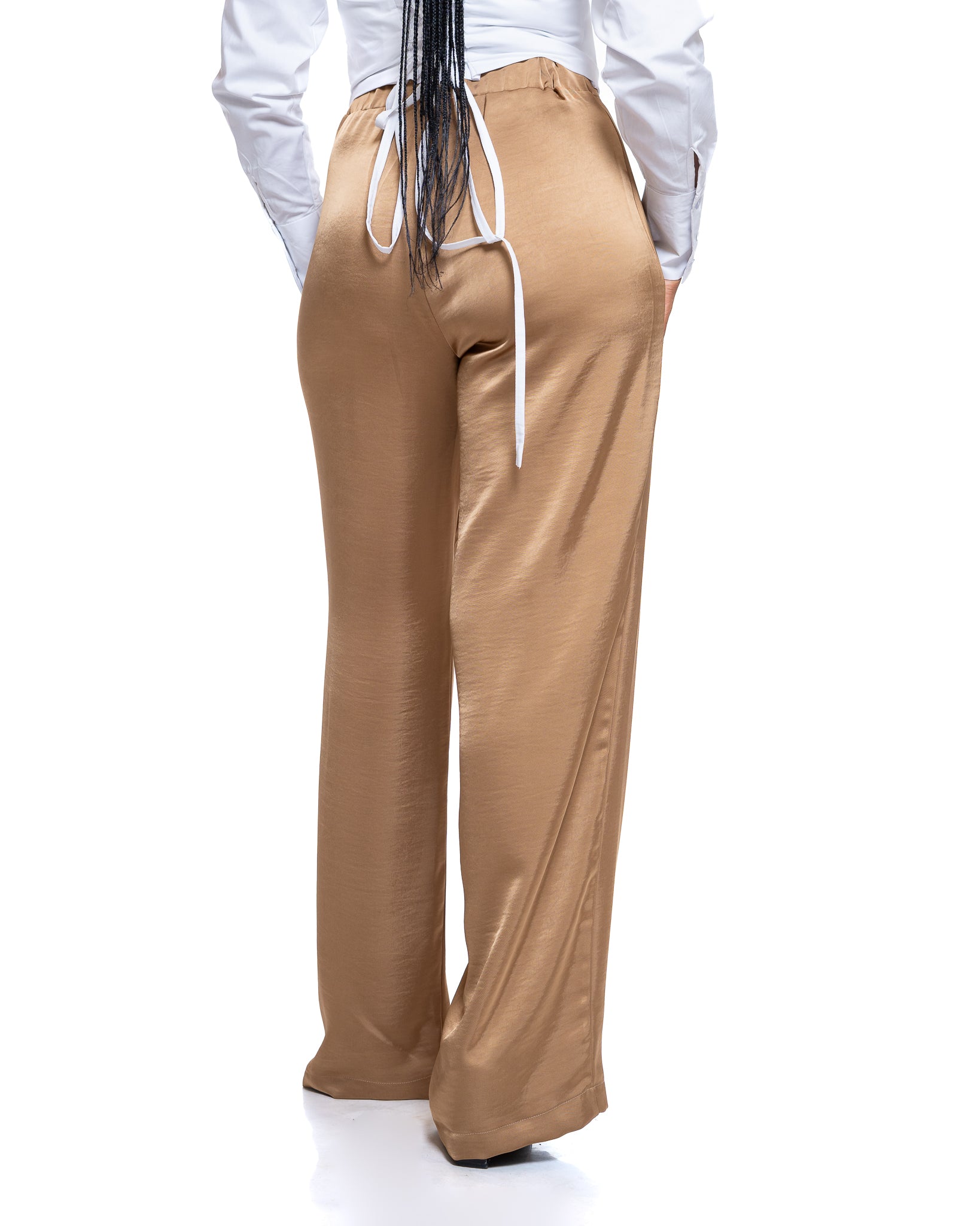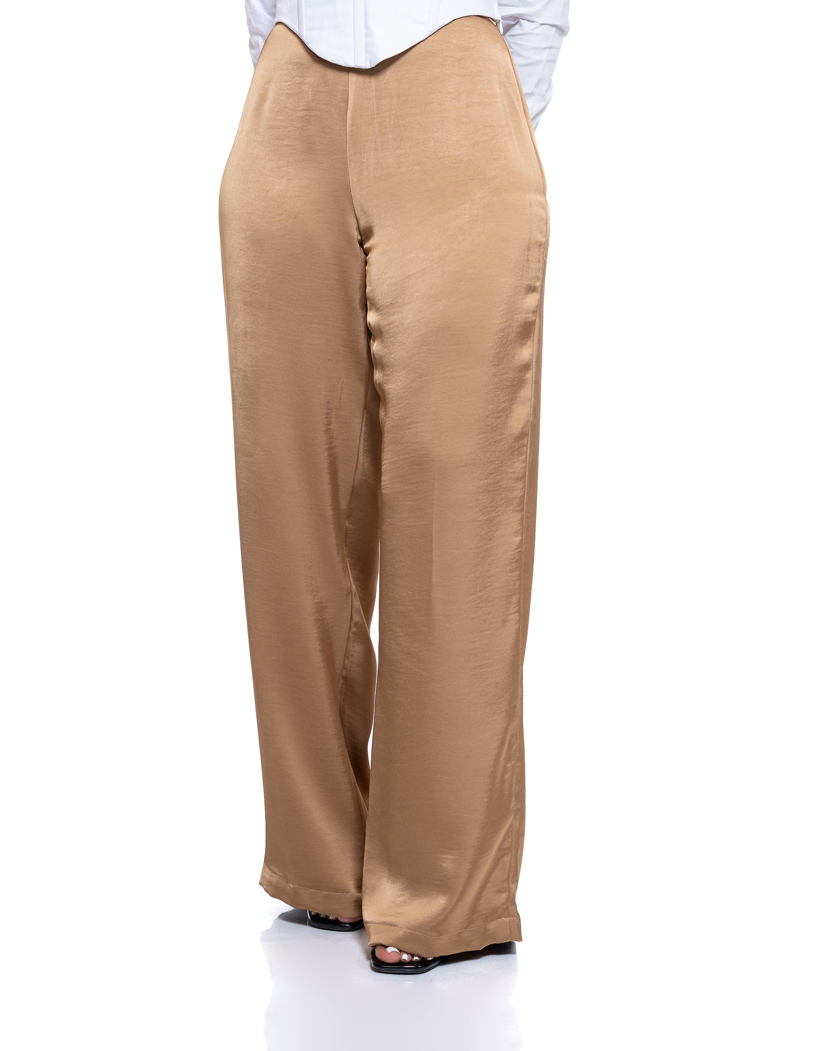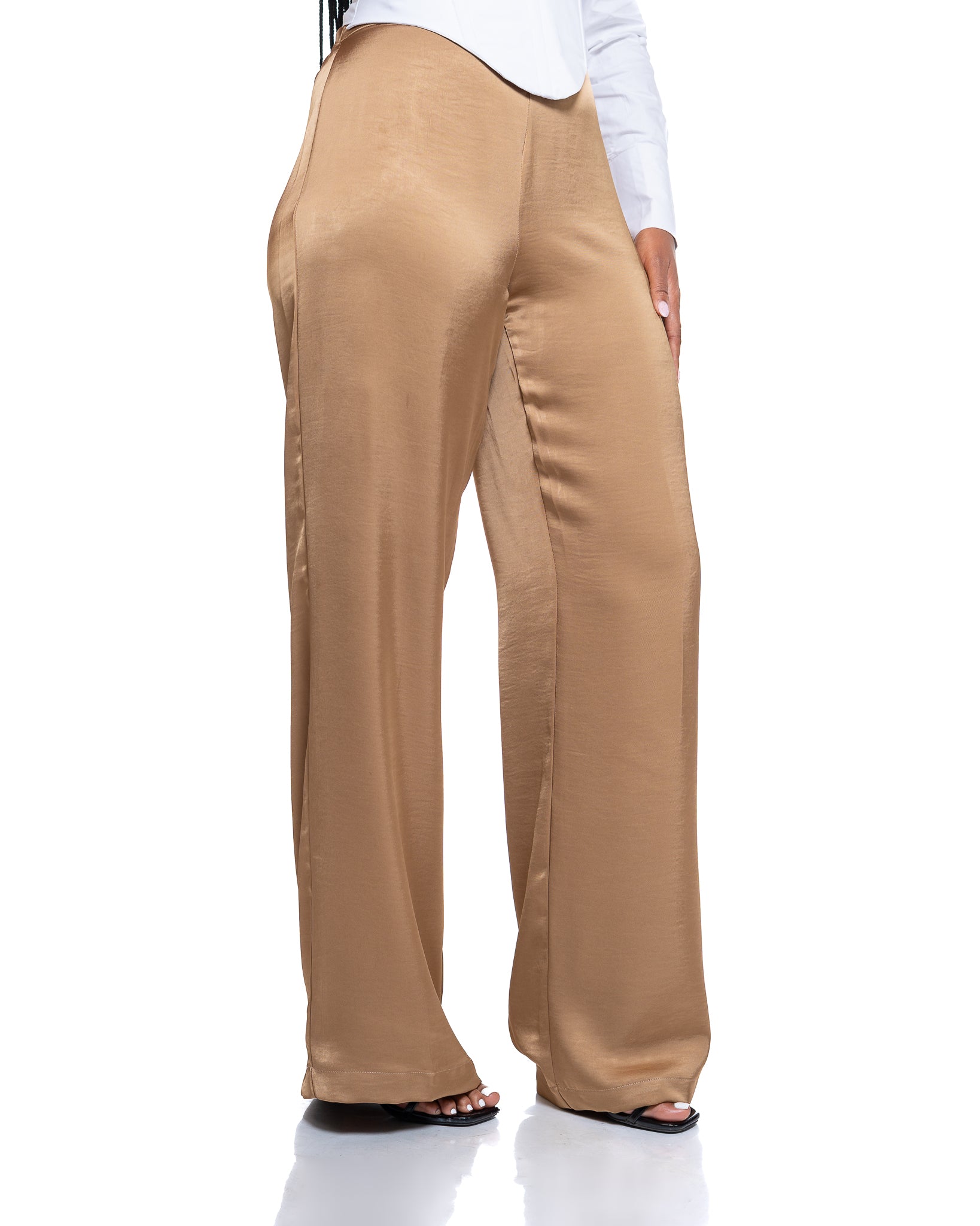 Molten Satin Wide Leg Pants in Tan