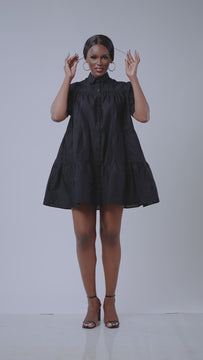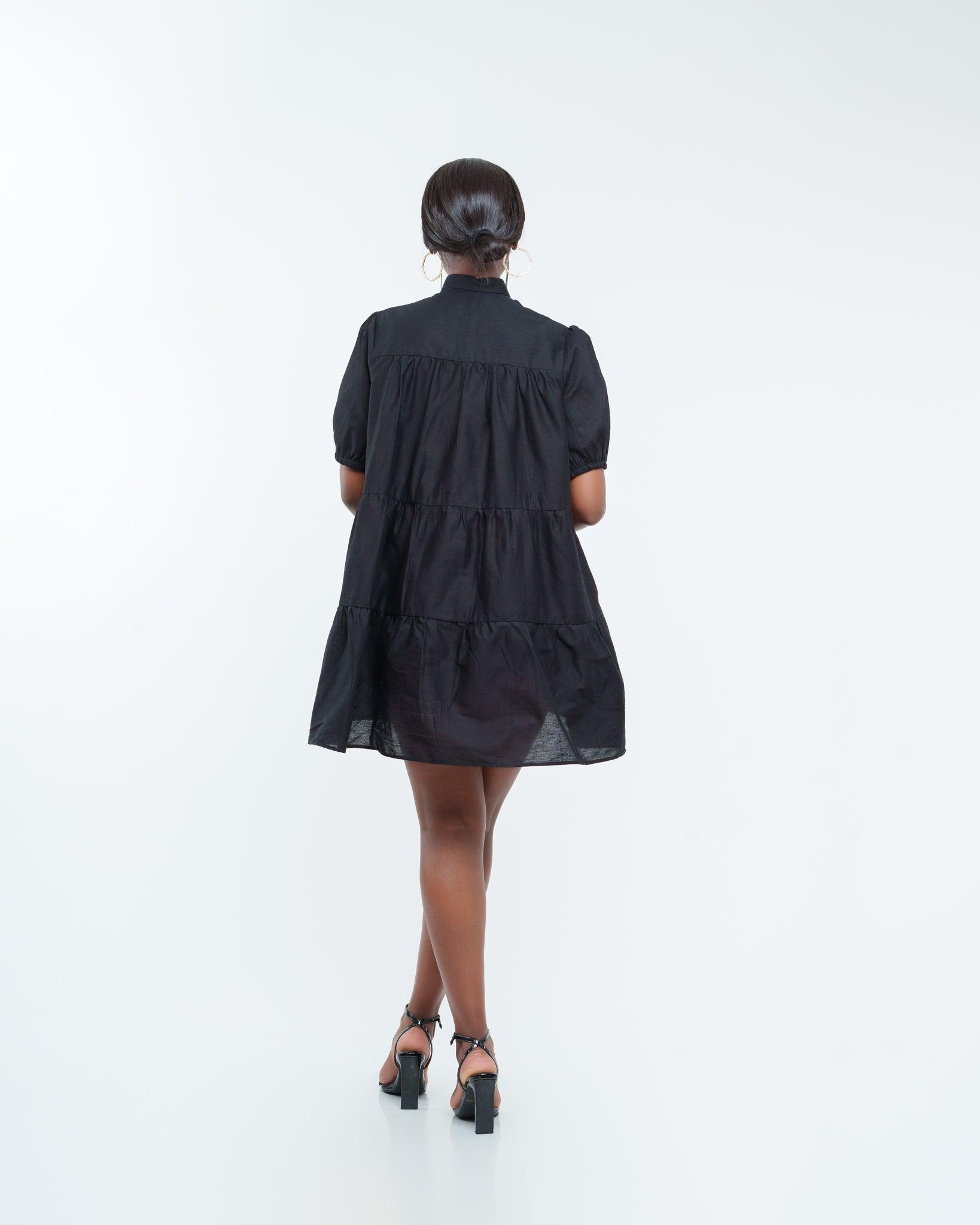 Meet the dress that does it all, playful, breathable, and endlessly versatile. Crafted from a soft, lightweight cotton-blend fabric, this tiered black shirt dress brings movement and comfort together in a chic A-line silhouette.